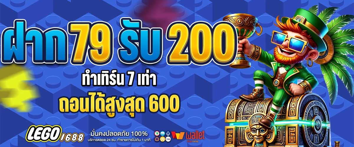 ฝาก 79 → รับเพิ่ม 121 = รวม 200 / ทำเทิร์น 7 เท่า / ถอนได้สูงสุด 600